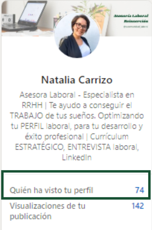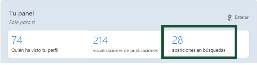 Este dato también es de mucha importancia, ya que, si estás recibiendo muy pocas visitas en tu perfil, posiblemente no estés llegando a los selectores de personal o a las personas a las que te interesa atraer.